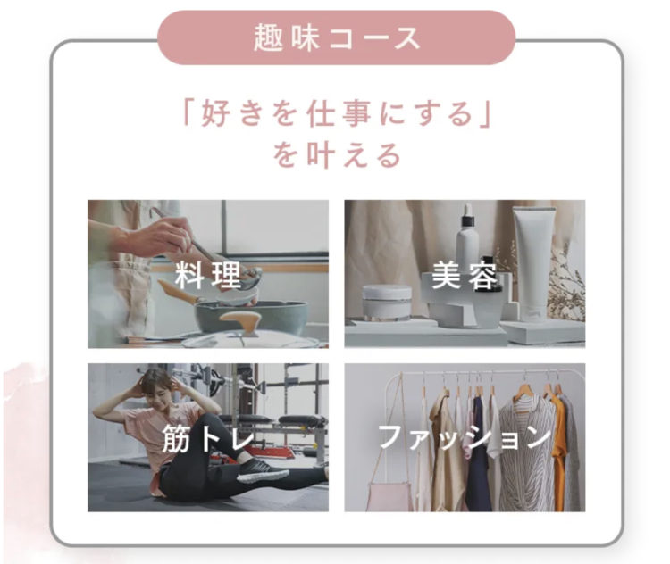 趣味コース(5ヶ月プラン)![]() | 「好きを仕事にする」をコンセプトに、趣味のアカウントを収益化やファン獲得につなげるための基礎を学びます。副業を始めたい初心者の方に最適です。 | 19,600円/月~ |