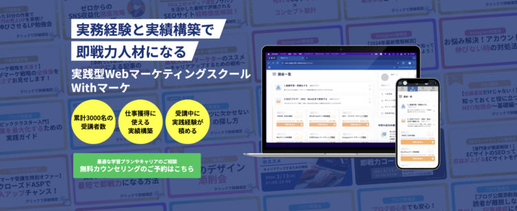 withマーケなら400本以上の動画講座を視聴でき、自分のペースで必要な知識を吸収できる環境が整っています。