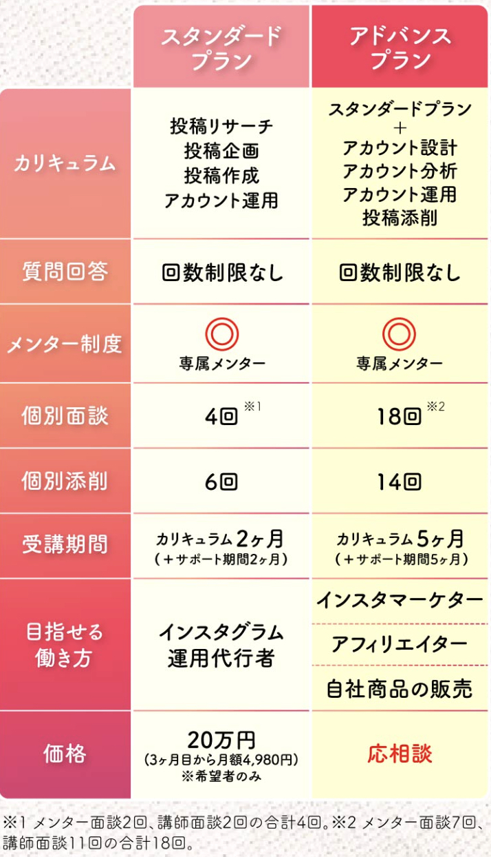 プロフェッショナル | 6ヶ月〜 | LINEで 無料相談 | SNS運用代行のプロ(ディレクター)として 月50万円以上の安定収入を目指す方 |
